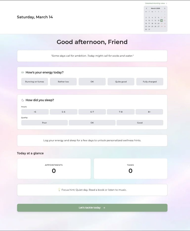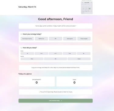 In der Entwicklung befindet sich bereits die Kaleissera-App. Sie wird der Ort, an dem Termine und Fürsorge ganz natürlich ihren Platz finden. Ohne Druck, ohne Schuldgefühle und ohne den Zwang zur Selbstoptimierung. Stattdessen bietet sie einen wertfreien Raum, um die Mosaiksteine des Alltags mit Leichtigkeit zu ordnen und die eigene Kraft sanft im Fokus zu behalten.